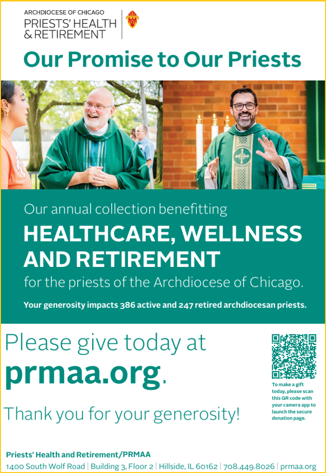 On June 7-8, 2025, we have the opportunity to express our gratitude to our priests who number 386 active and 247 retired with the gift of our support for their health and retirement needs. Your contribution will support their health care, nursing care and retirement. Those who benefit from your generosity are our Archdiocesan priests. Please be as generous as possible. Thank you!
