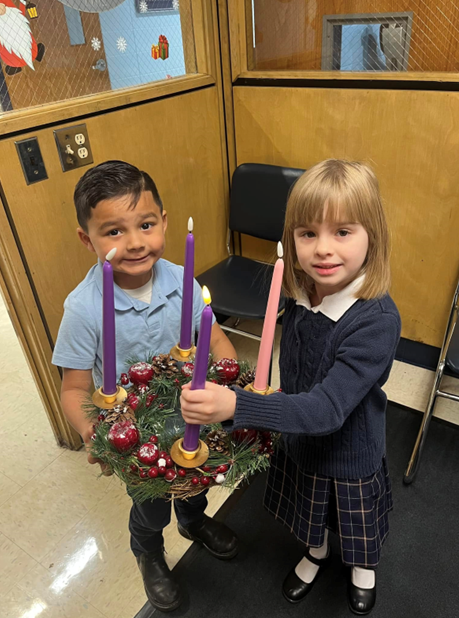 Our Kindergarten Students are lighting our Advent Wreath every morning.
