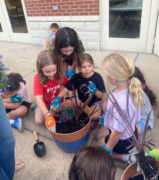 They helped pick up garbage, planted potted flowers