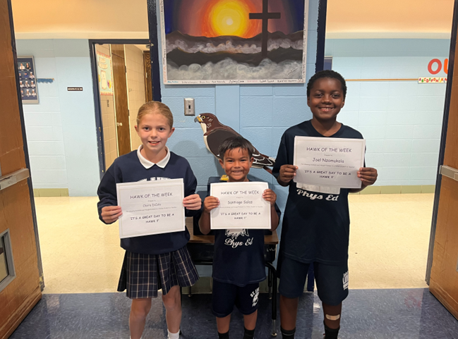 showing off their certificates for being Hawk of the Week! Way to go students!