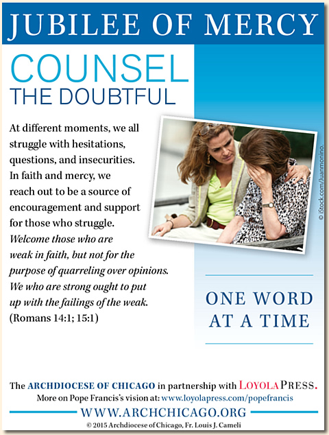 In formal documents, presentations, and homilies outlining the purpose of this Jubilee Year of Mercy, Pope Francis explains that compassion and understanding for those in difficult situations is not only our individual responsibility, but something the whole Church officially needs to manifest. Today’s Acts of the Apostles reading presents a moving example of the early church doing precisely that. Prayerful openness to the Holy Spirit assures the assembly that they have not acted alone in discerning the correct resolution: “It is the decision of the Holy Spirit and of us.” And they have chosen the compassionate response: “not to place on you any burden beyond these necessities” (Acts 15:28). Yet how daringly creative - the Jewish majority sets aside lifelong rituals that establish spiritual identity and express covenant fidelity. How radically trustful - the church affirms universally valid principles while respecting uniquely local and personal situations. Exactly the grace Pope Francis prays this Jubilee Year will renew in today’s Church!