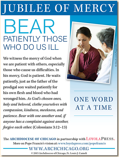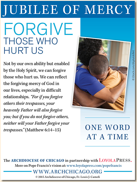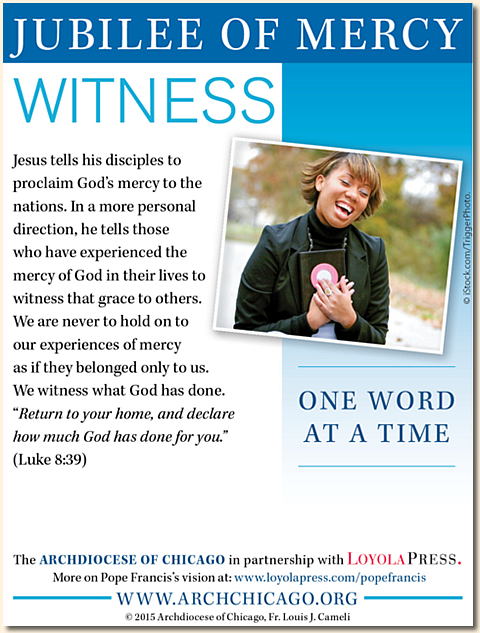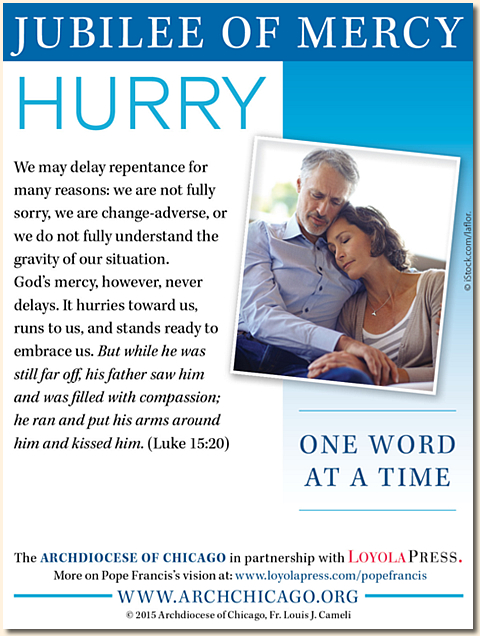 This Jubilee Year of Mercy bids us share our own experience of Jesus’ mercy with those on what Pope Francis calls the “peripheries” - people who feel marginalized, even unwelcome - inviting them to come home. But with all this mercy, why today’s mayhem? “Do you think I have come to establish peace on earth? No, I tell you, but rather division” (Luke 12:51). Jesus “breaks down” those “breakups” in painful detail - parents, children, even in-laws. “Against” appears eight times in five verses. Jeremiah faced death for bearing witness (Jeremiah 38:4). Can’t we bear at least a small share of the sometimes merciless cost of sharing mercy? The Letter to the Hebrews warns us, keep your “eyes fixed on Jesus” and “so great a cloud of witnesses,” lest we “grow weary and lose heart” as we run “the race that lies before us” (Hebrews 12:1-3). After all, “for the sake of the joy that lay before him,” Jesus “endured the cross” (12:2). Can’t we endure our small crosses for the sake of sharing mercy?