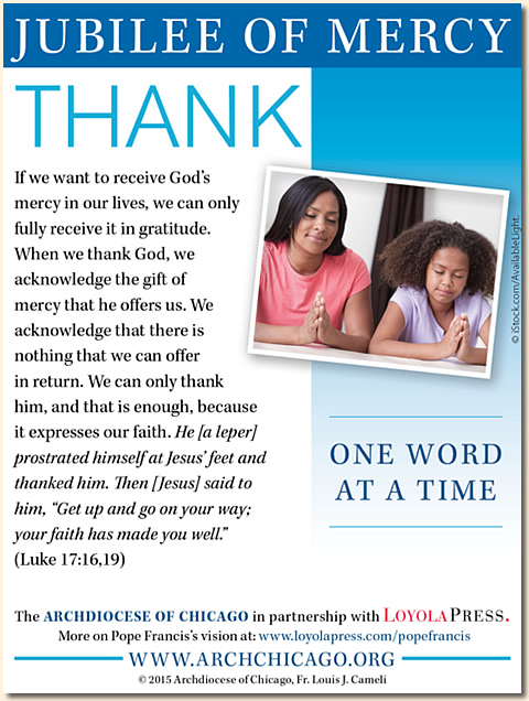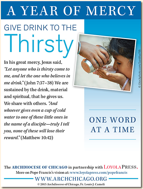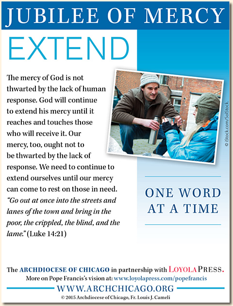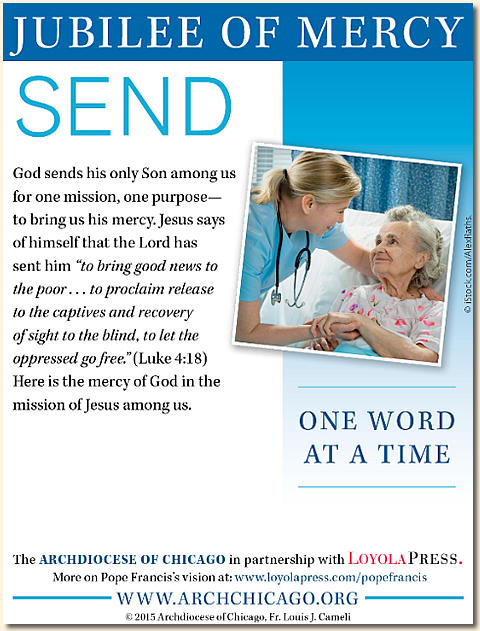 When he announced this Jubilee Year of Mercy, Pope Francis highlighted today’s Gospel episode, in which Jesus proclaims in his hometown synagogue his Spirit-anointed mission to fulfill the promises of the prophet Isaiah. Jesus’ mission then, says Pope Francis, is our mission now as Jesus’ disciples this Jubilee Year of Mercy: to bring glad tidings to the poor, liberty to captives, recovery of sight to the blind, freedom to the oppressed, and to proclaim a year acceptable to the Lord, a year of God’s mercy. Pope Francis challenges us to translate Je-sus’ mission to contemporary needs: to console by word and deed those materially or spiritually poor, to liberate those bound by modern society’s new forms of slavery, to open the eyes of those blinded by their own self-interest, and to restore human dignity to all those from whom it has been stolen. To act with mercy in a spirit of joy!