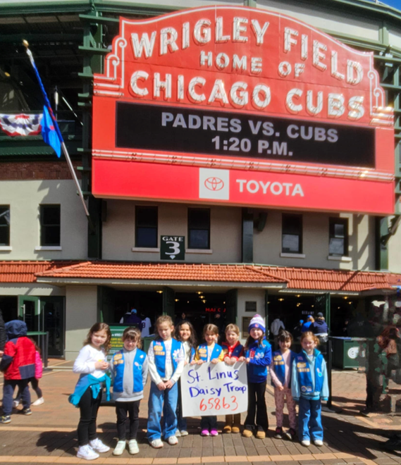 Our Daisy Troop represented Girl Scouts and our school at a game.