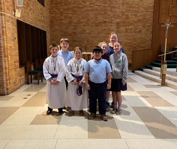 Mrs. Powers’ class led us in our All-School Mass in April.