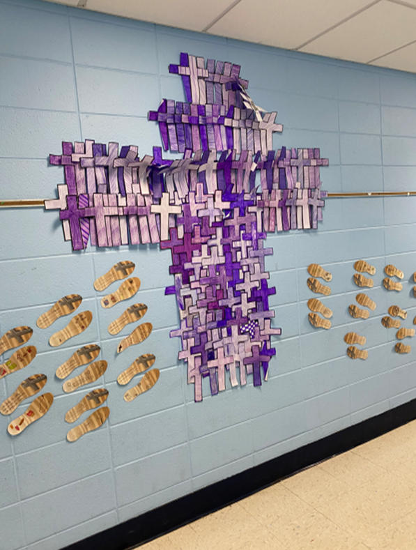 Every student wrote down their Lenten promises on a foot and we hung them in the halls