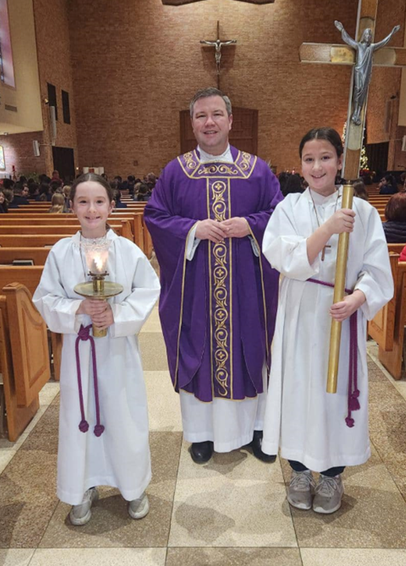 Here is Eden Blackburn and Emma Delejewski with Fr. Ryan before the Mass started