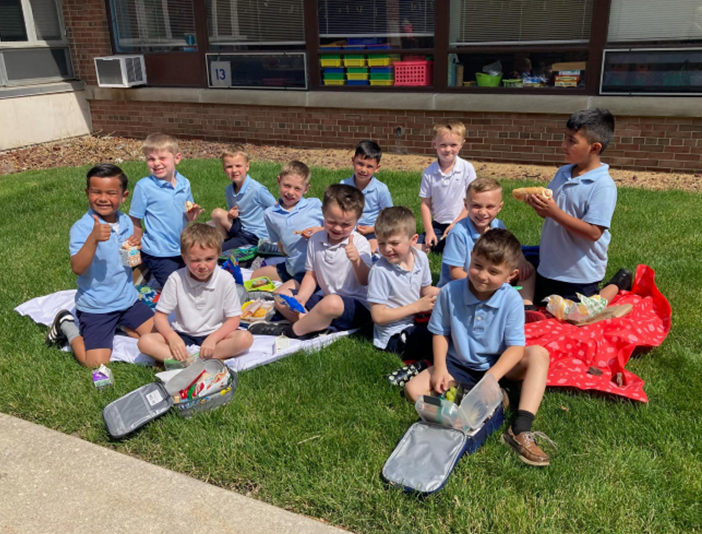 The teachers took them outside for lunch. They enjoyed spending time outside