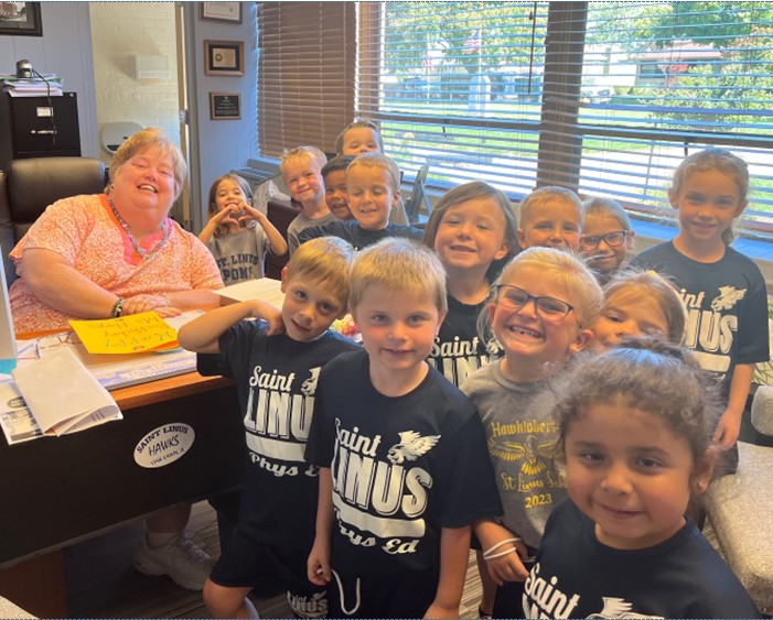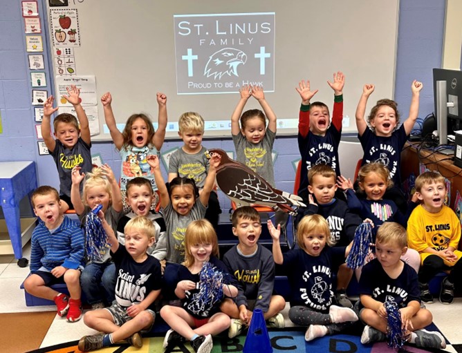 Here is our St. Linus Mascot “Hawkeye the Hawk”