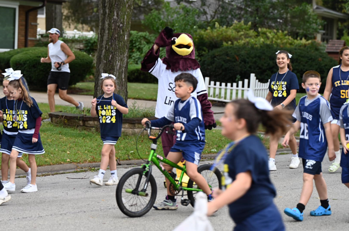 The kids rode bikes, passed out candy and cheered for St. Linus along the route.