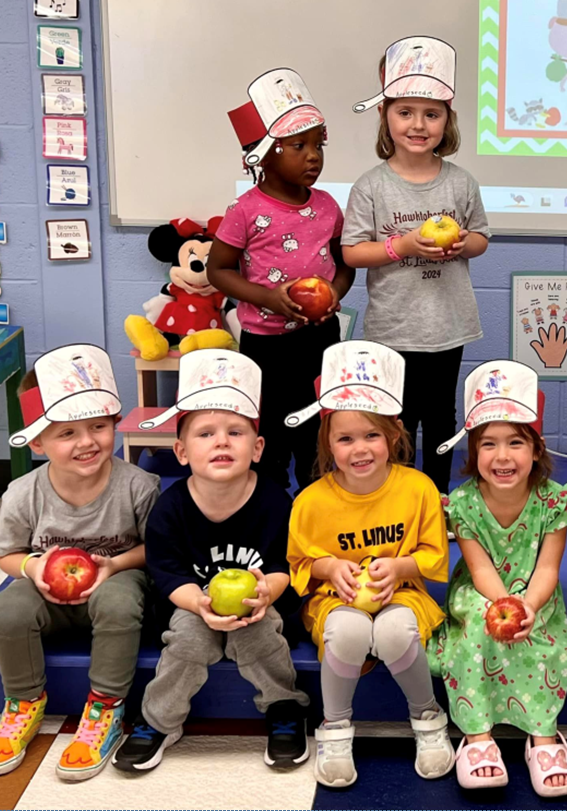 Here is Mrs. Kokaska’s class showing off their Johnny Appleseed hats!